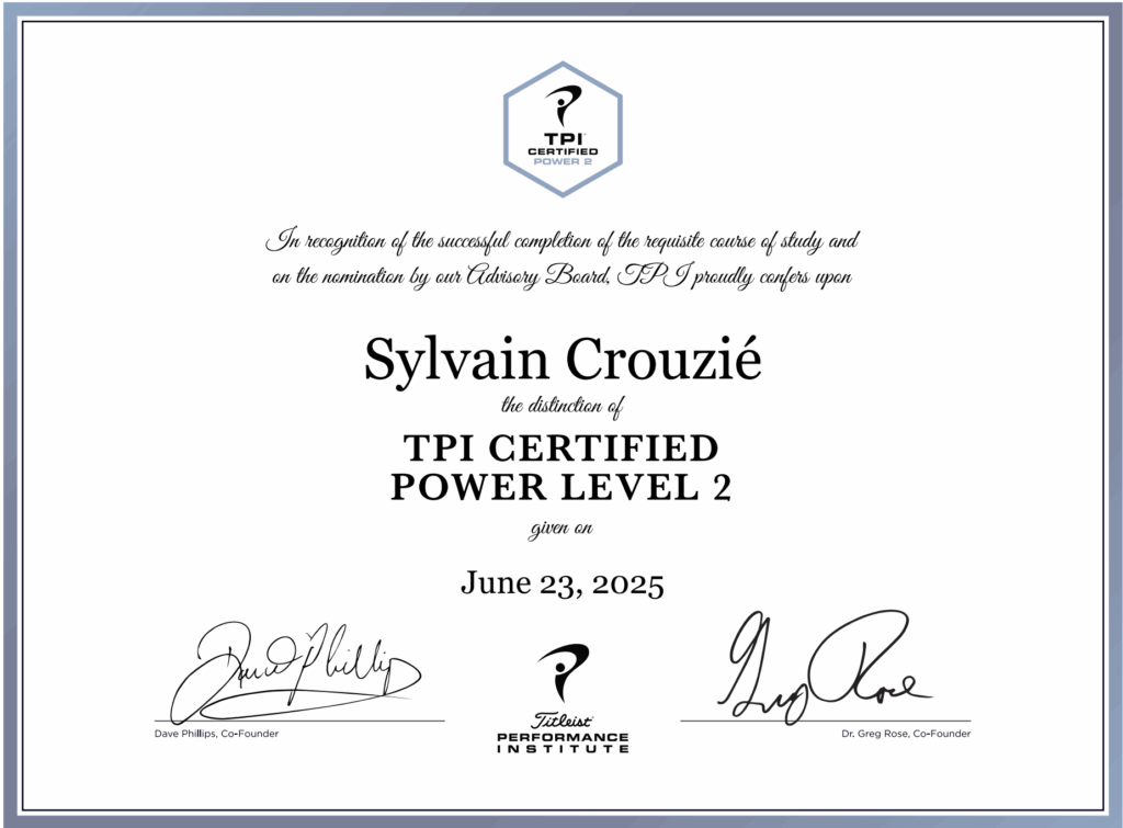 Le Titleist Performance Institute (TPI) a été fondé en 2003 par le Dr Greg Rose (médecin spécialiste en biomécanique) et Dave Phillips (coach PGA). Leur vision était d’analyser et d’optimiser la performance du golfeur grâce à la science du mouvement. TPI repose sur un principe clé : chaque swing est unique, mais chaque golfeur possède des limitations physiques qui influencent sa technique. À travers une série de tests spécifiques, TPI identifie ces limitations et propose des solutions adaptées. Ce modèle, reconnu mondialement, est utilisé par les meilleurs joueurs professionnels pour améliorer performance et longévité.
